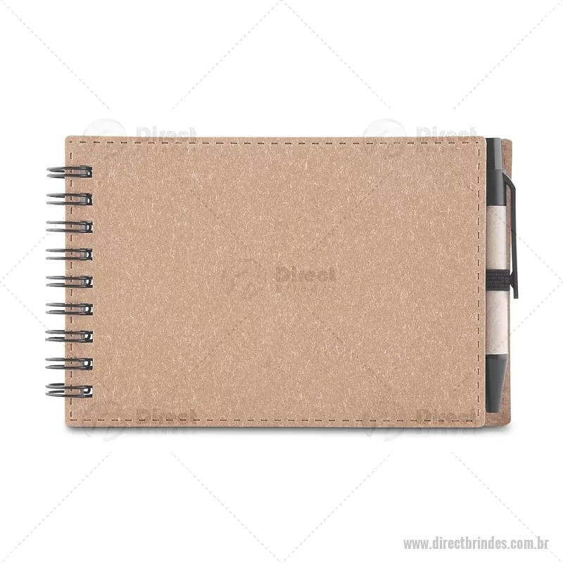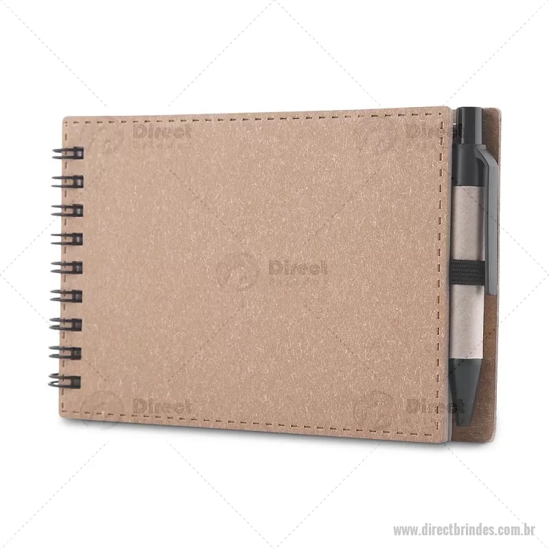 Mini Bloco/ Caderno A6 de anotações com caneta Mini Caderno com capa em papelão e encadernação espiral wire-o, 70 folhas sem pauta em 70g/m². Acompanha caneta confeccionada em papelão reciclado com detalhe em plástico. Dimensão Produto: 14x9cm (Caderno) Dimensão Produto: 8,3xø1cm (Caneta) Peso do Produto: 0,084kg - Barato - DRTBLC277