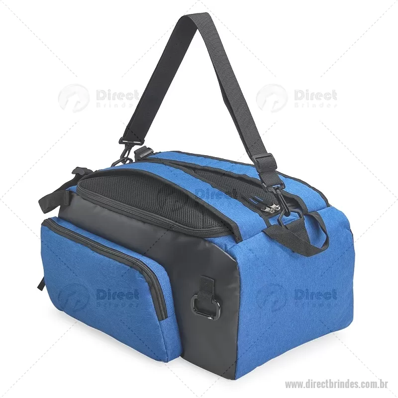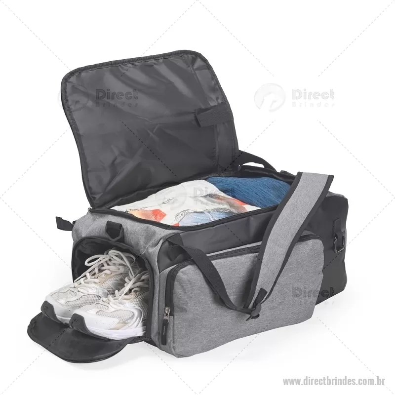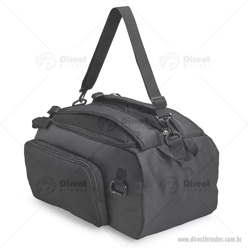 Bolsa esportiva em poliéster resistente à água, com detalhes emborrachados e capacidade de até 40 litros. Possui três compartimentos principais, incluindo bolso para notebook de até 13” e espaço separado para calçados. Conta com bolso lateral em malha, alça transversal ajustável e removível, além de alças acolchoadas e área traseira com espuma respirável, permitindo uso como mochila. - Barato - DRTBOL050