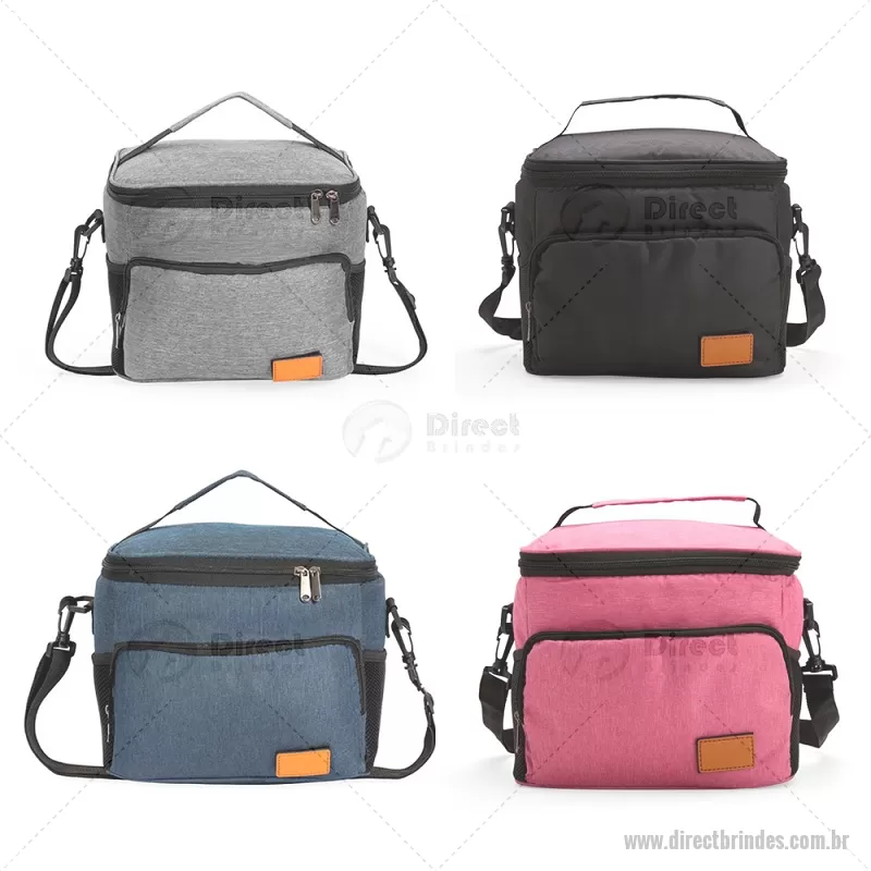 Bolsa térmica de 11 litros feita em Oxford resistente à água, com revestimento interno em PEVA atóxico e fechamento em zíper. Possui bolso frontal com plaquinha em couro sintético, dois bolsos laterais em tela, alça superior em nylon e alça transversal removível e ajustável. Prática e funcional para uso diário. - Barato - DRTBT101