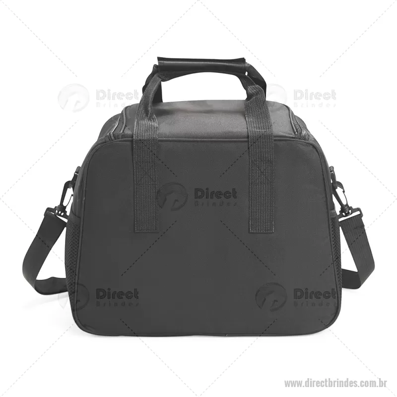 Bolsa térmica de 20 litros feita em Oxford, com fechamento em zíper e revestimento interno em PEVA. Possui bolso frontal, dois bolsos laterais em tela, alças de mão com suporte de junção e alça transversal regulável e removível. Acompanha plaquinha em couro sintético fixada por velcro. Ideal para transportar alimentos e bebidas com praticidade. - Barato - DRTBT102