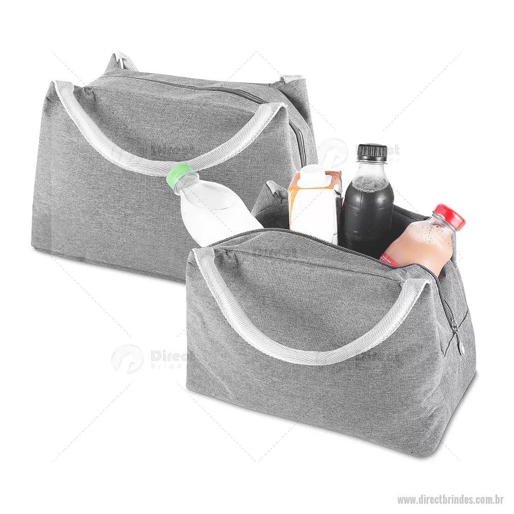 Bolsa térmica costurada, confeccionada em poliéster 300D na parte externa e revestimento interno em alumínio com manta térmica, auxiliando na conservação da temperatura dos alimentos e bebidas. Modelo sem solda, possui fechamento em zíper com puxador em formato de colher e capacidade aproximada de 7 litros. - Barato - DRTBT120