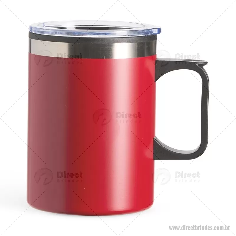 Caneca de 375 ml com interior plástico e revestimento externo em inox, que evita o aquecimento das mãos. Possui tampa com bocal e trava de segurança, além de base emborrachada antiderrapante. Prática e ideal para o dia a dia. - Barato - DRTCAN098