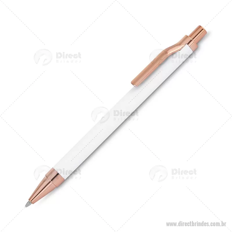 Caneta esferográfica com corpo em alumínio reciclado, acionador e clipe em acabamento rosé/bronze. Peso do Produto: 0,014kg Dimensão do Produto: 13,8xø1cm - Barato - DRTCMT307