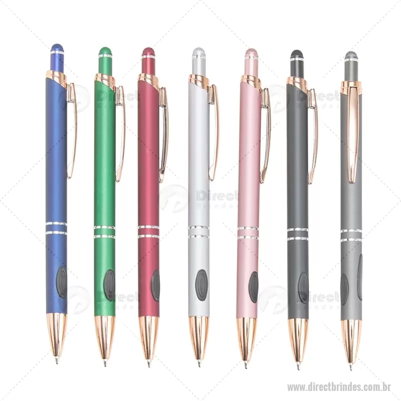 Caneta Metal Touch A elegância e o conforto combinados em uma única caneta esferográfica para garantir uma escrita mais agradável através da sua construção metálica e seu par de grips em borracha, além de ponta e clipe em plástico. Sua carga azul de 1.0 mm possui acionamento por clique com ponteira emborrachada que que permite seu uso como uma caneta touch para interação com smartphones, tablets e demais dispositivos de telas touchscreen. Largura : 1,5 cm x Circunferência : 4,5 cm x Comprimento : 14 cm Peso aproximado (g): 17 - Barato - DRTCMT293