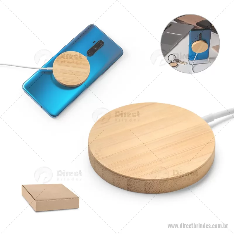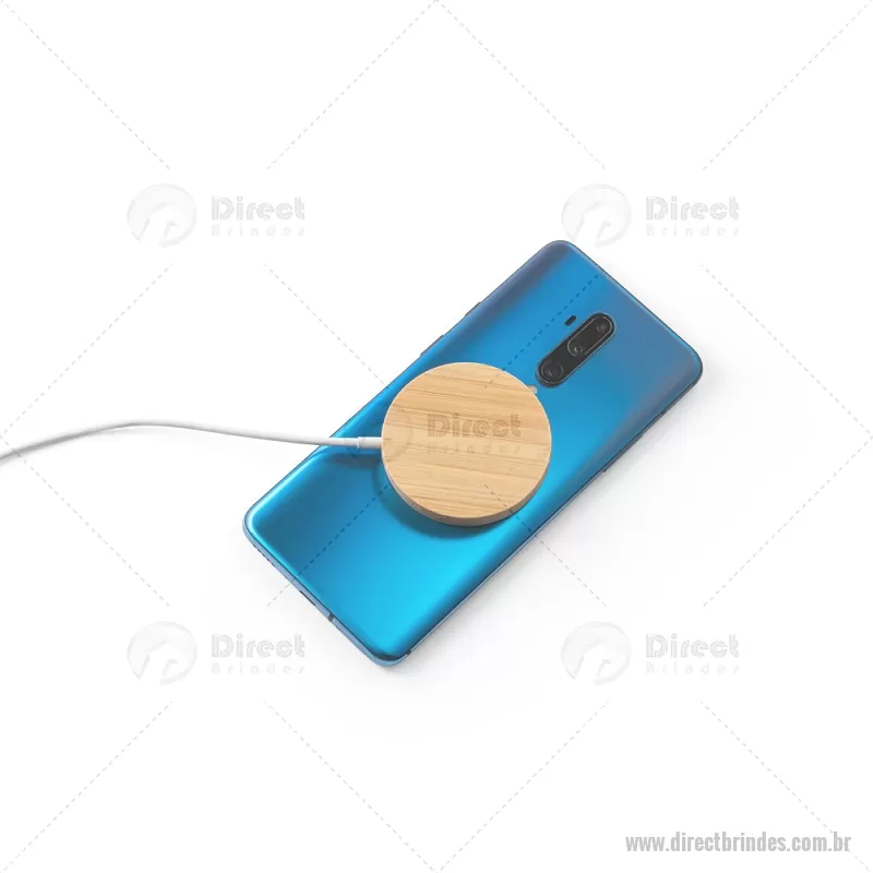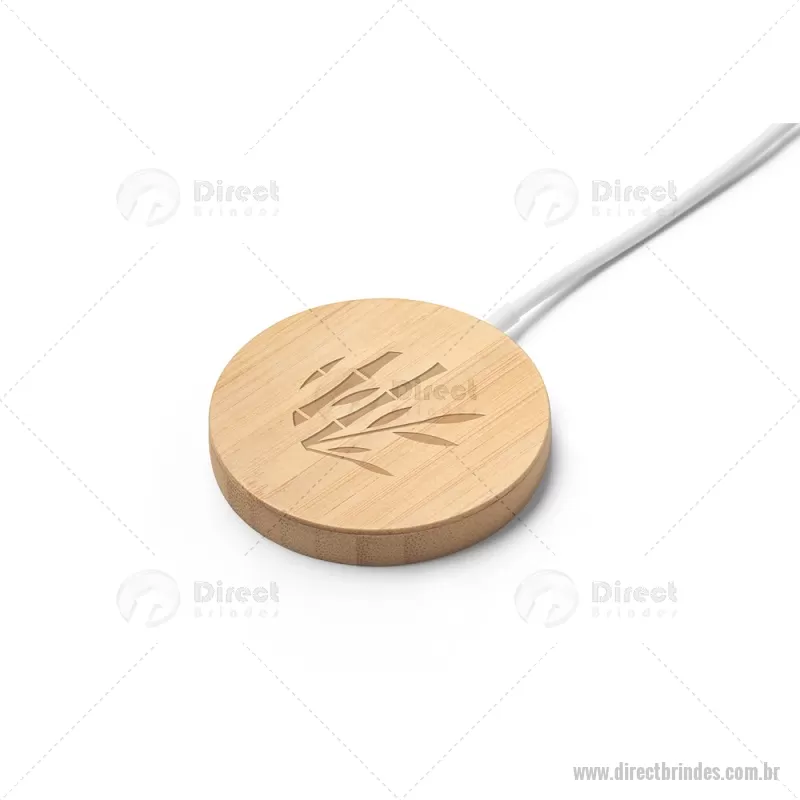 Carregador magnético por indução super-rápido em bambu 15 W Carregador magnético por indução (wireless) super-rápido em bambu. Potência de carregamento super-rápido de 15W. Incluso cabo de carregamento USB-C de 1 metro. Compatível com dispositivos móveis com tecnologia de carregamento sem fios. Fornecido em caixa presente de papel kraft reciclado. A cor e o resultado da impressão nos materiais naturais pode variar entre produtos. Medidas Produto: Ø59 x 8 mm Peso do Produto (g.): 35 - Barato - DRTTEC533