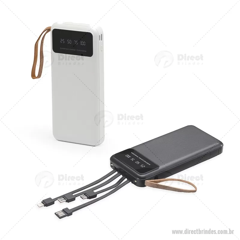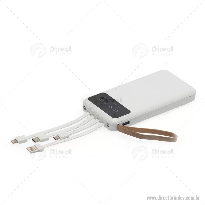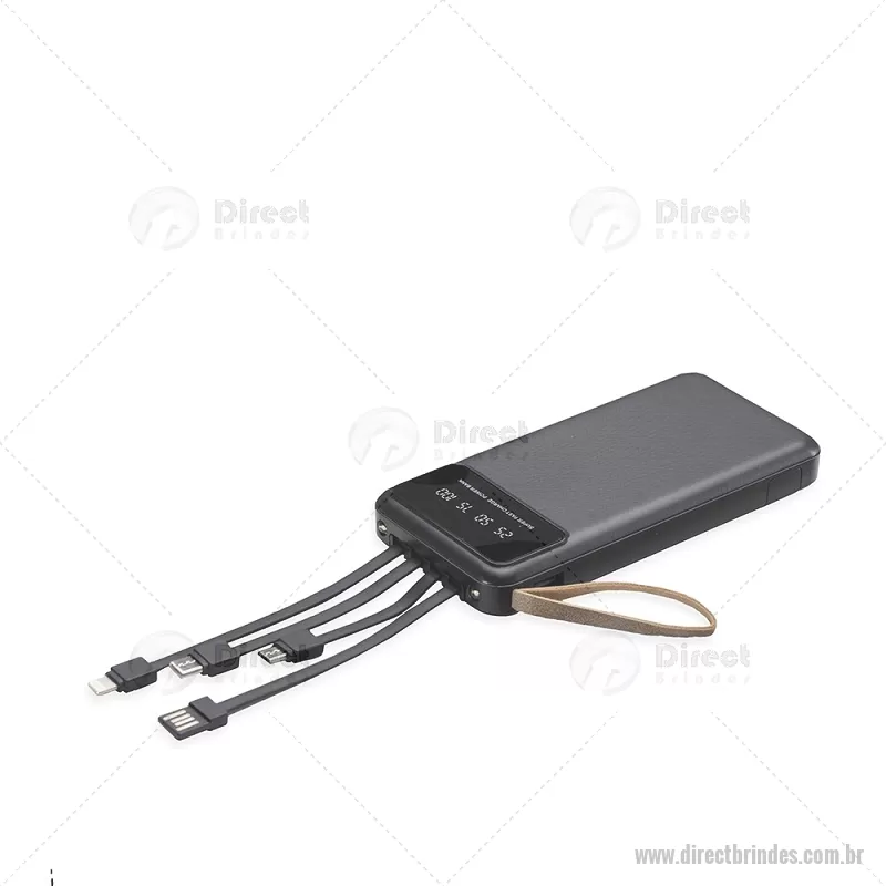 Power Bank 10.000mAh com Lanterna e Multissaídas Descrição: Carregador power bank de 10.000mAh com lanternas, múltiplas saídas e suporte para celular. Fabricado em plástico com display integrado, este power bank vem equipado com quatro cabos de carregamento, eliminando a necessidade de transportar cabos extras. Compatível com entradas V8, Tipo-C, Lightning e USB, praticidade é o sinônimo deste carregador. Com alça de couro sintético e um suporte funcional para celular, estilo gaveta, o power bank possui capacidade real de 6.000mAh para manter os dispositivos sempre carregados. Acompanha cabo USB-V8. medidas: Altura : 14,4 cm x Largura : 6,8 cm x Espessura : 2 cm Peso aproximado (g): 251 - Barato - DRTTEC550