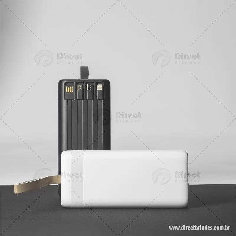 Power Bank 20.000mAh com Lanterna e Multissaídas Descrição: Power bank em plástico com capacidade de até 20.000mAh. Possui quatro cabos integrados com saídas Lightning, USB-C, Micro-USB e USB. Conta ainda com duas entradas, uma USB-A e outra USB-C, painel de LED numérico e lanterna frontal e alça fixa em couro sintético para transporte. Acompanha cabo USB-C. Altura : 15 cm x Largura : 6,8 cm x Espessura : 3 cm Peso aproximado (g): 418 - Barato - DRTTEC532