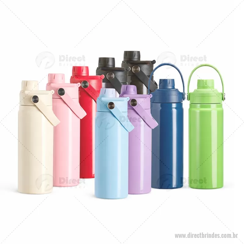 Garrafa térmica em inox com capacidade de 600ml, ideal para o dia a dia. Conta com estrutura de parede dupla e isolamento a vácuo, garantindo a conservação da temperatura de bebidas por mais tempo. Possui tampa plástica rosqueável com proteção para o bocal, além de alça fixa que facilita o transporte com praticidade e segurança. - Barato - DRTGAT174