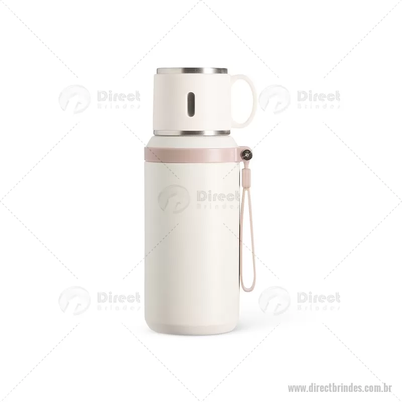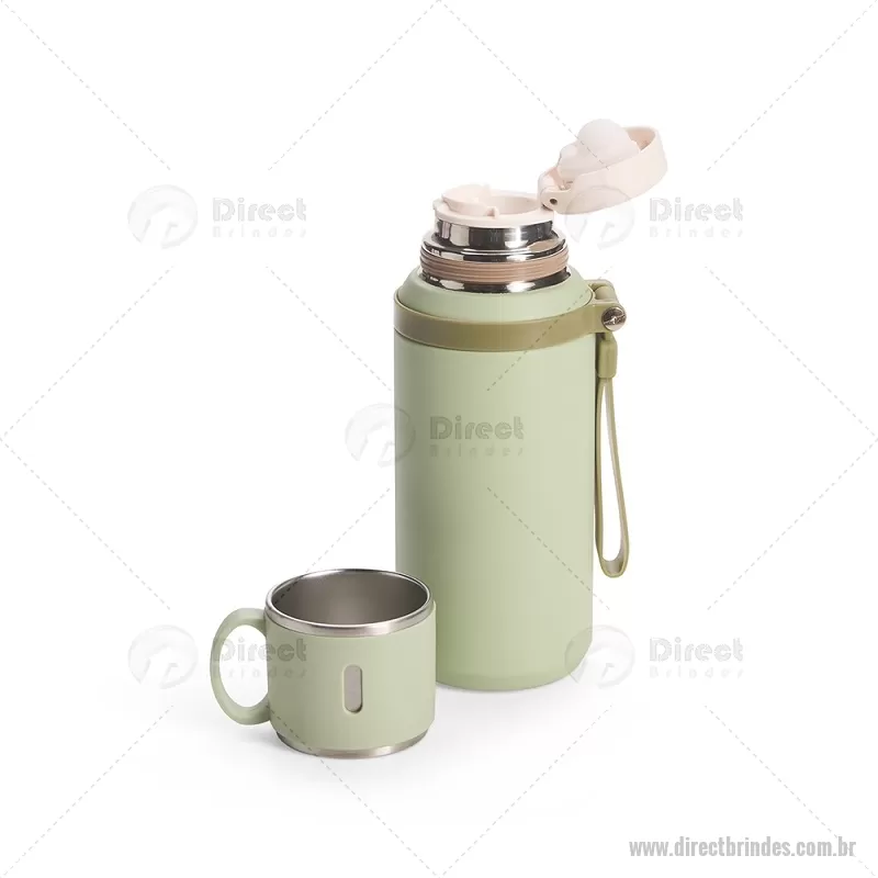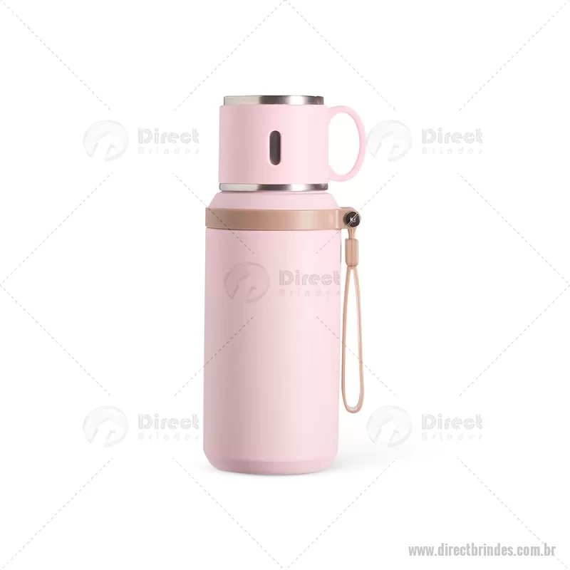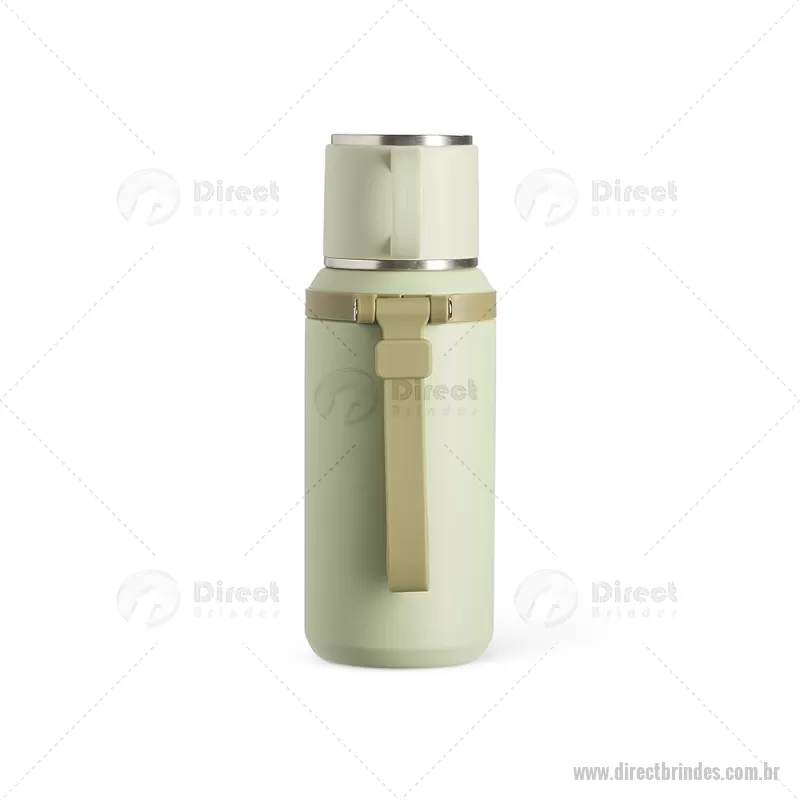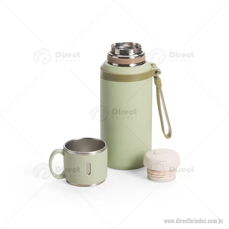 Garrafa térmica de 600 ml confeccionada em inox com acabamento em pintura eletrostática. Possui parede dupla para melhor conservação térmica, tampa interna rosqueável com anel de vedação, abertura do bocal por botão e infusor integrado. A tampa externa funciona como caneca e a alça emborrachada facilita o transporte, tornando o uso prático no dia a dia. - Barato - DRTGAT160