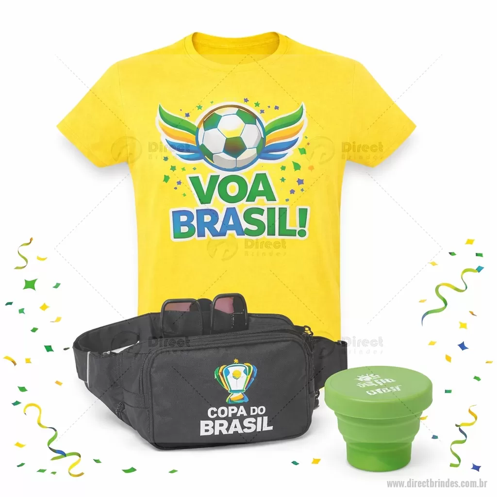 Kit Carnaval 3 Peças Contém: 1 Pochete de Nylon Impermeável, oferece proteção contra a água, garantindo que os itens essenciais fiquem protegidos. Com dois compartimentos com zíper, sendo o principal com um bolso de malha elástica, é possível organizar dinheiro, chaves, fones de ouvido, maquiagens e muito mais. As alças ajustáveis. - Gravação em Silk screen 1 cor (POC009) 1 Copo sanfonado. Copo retrátil com capacidade de 150ml, livre de BPA. Contém tampa plástica de encaixe com acesso para chaveiro. - Gravação em Silk screen 1 cor (CPO140) 1 Camiseta unissex de corte regular em malha 100% algodão (135 g/m2) com fio 30/1 misto. Com gola em ribana 1,5x1,5 com fita de reforço e com costura dupla nas mangas, barra de fundo e laterais. Tamanhos: P, M, G, GG. - Gravação em Transfer Colorido (CMS005) * Verificar cores de produtos Disponíveis. - Barato - DRTKIT030