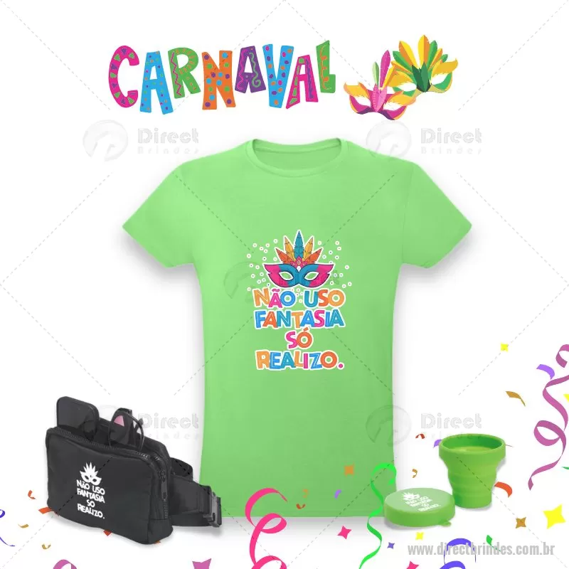 Kit Carnaval 3 Peças Contém: 1 Pochete de Nylon Impermeável, oferece proteção contra a água, garantindo que os itens essenciais fiquem protegidos. Com dois compartimentos com zíper, sendo o principal com um bolso de malha elástica, é possível organizar dinheiro, chaves, fones de ouvido, maquiagens e muito mais. As alças ajustáveis. - Gravação em Silk screen 1 cor (POC009) 1 Copo sanfonado. Copo retrátil com capacidade de 150ml, livre de BPA. Contém tampa plástica de encaixe com acesso para chaveiro. - Gravação em Silk screen 1 cor (CPO140) 1 Camiseta unissex de corte regular em malha 100% algodão (135 g/m2) com fio 30/1 misto. Com gola em ribana 1,5x1,5 com fita de reforço e com costura dupla nas mangas, barra de fundo e laterais. Tamanhos: P, M, G, GG. - Gravação em Transfer Colorido (CMS005) * Verificar cores de produtos Disponíveis. - Barato - DRTKIT030