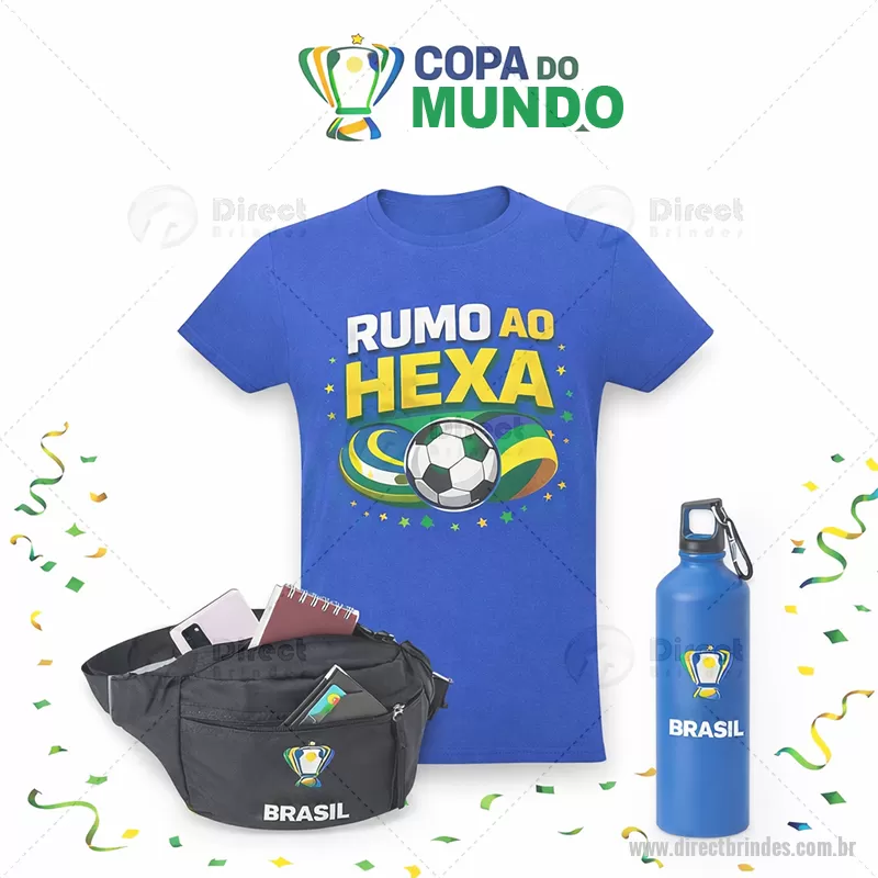 Kit Carnaval 3 Peças Kit Torcedor Copa do Mundo - Vai Brasil Contém: 1 Pochete de Poliéster com três compartimentos bem distribuídos, ela oferece um bolso traseiro seguro e de fácil acesso, um bolso central com rede interna para separar e organizar itens, além de um bolso frontal ideal para objetos menores. Com alça de nylon ajustável para se adaptar a cada pessoa. - Gravação em Silk screen 1 cor (POC013) 1 Squeeze Alumínio com Acabamento Matt. Com tampaem PP mosquetão rosqueável. Capacidade até 800 ml. Food grade. ø73 x 259 mm. - Gravação em Silk screen 1 cor (SQM052) 1 Camiseta unissex de corte regular em malha 100% polyester fiado (135 g/m2) com fio 30/1 polyester. Com gola em ribana 1,5x1,5 com fita de reforço e com costura dupla nas mangas, barra de fundo e laterais. Tamanhos: P, M, G, GG - Gravação em Transfer Colorido (CMS006) * Verificar cores de produtos Disponíveis. - Barato - DRTKIT031