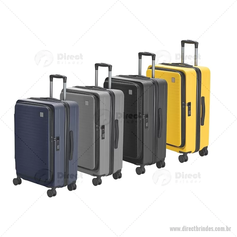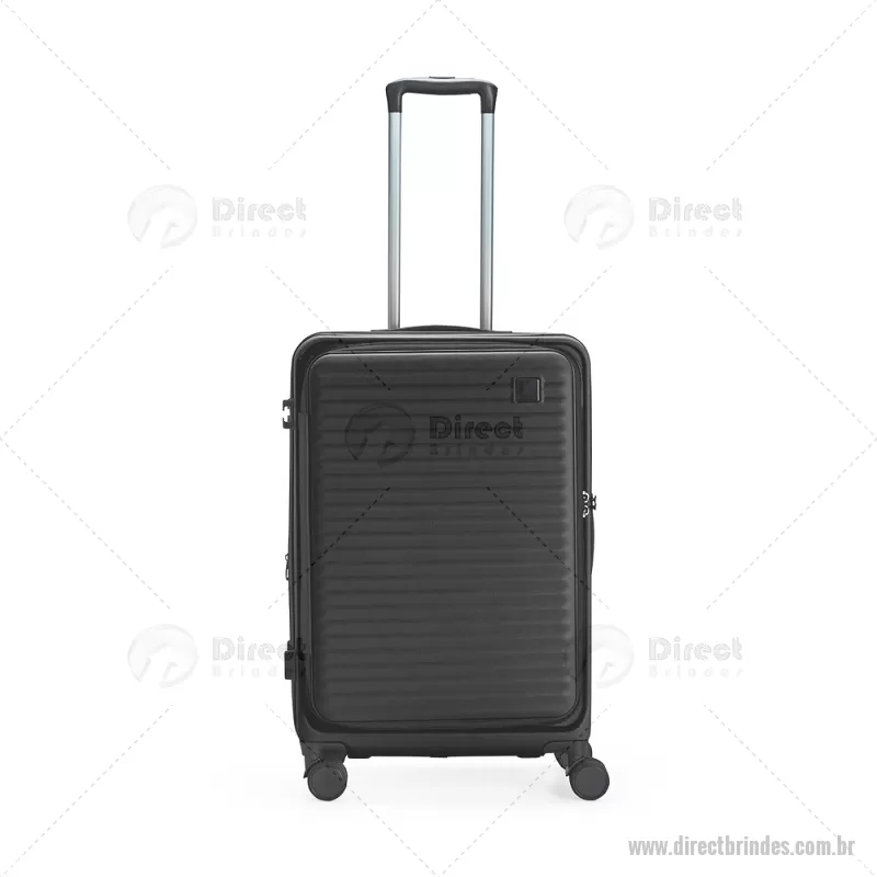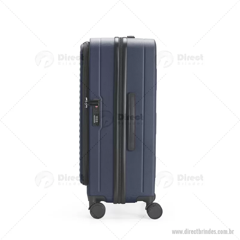Mala de viagem com capacidade de 66 litros, fabricada em plástico ABS resistente e equipada com cadeado TSA embutido para maior segurança. Possui abertura frontal com compartimentos internos organizadores, zíperes e cinta compressora, além de zíper expansível que amplia o espaço interno. Conta com puxador retrátil de três níveis, duas alças de mão, apoios e ganchos laterais, além de rodinhas com giro 360° para deslocamento fácil. Acompanha plaquinha metálica grafite para personalização. - Barato - DRTMC250