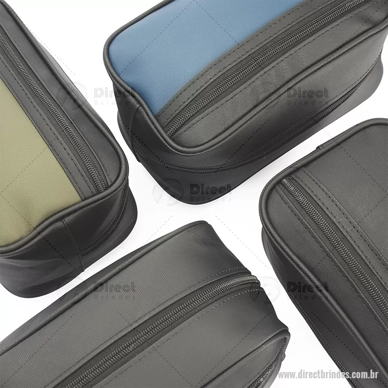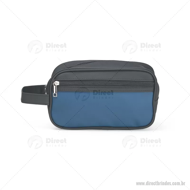 Nécessaire em couro sintético impermeável com fechamento em zíper. Possui bolso frontal também com zíper e alça lateral de mão. Altura : 14 cm x Largura : 24 cm x Profundidade : 9,5 cm Peso aproximado (g): 173 - Barato - DRTNC154