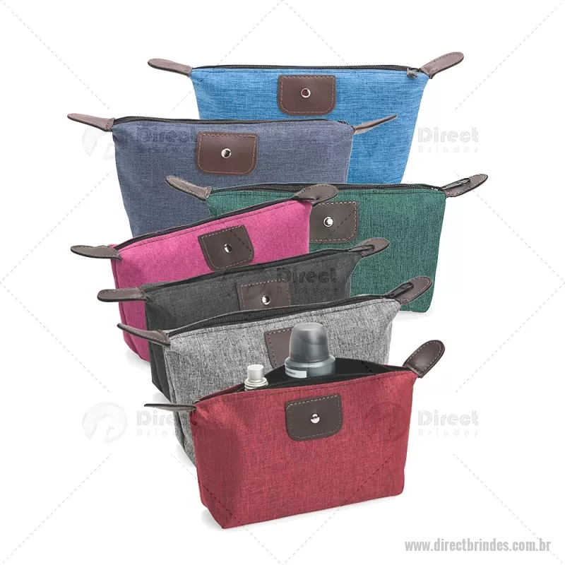 Nécessaire compacto em poliéster com mescla de PVC resistente à água. Possui fechamento em zíper e acabamento com detalhes em bidim e metal, oferecendo praticidade e um visual moderno para organizar pequenos itens do dia a dia. - Barato - DRTNC150
