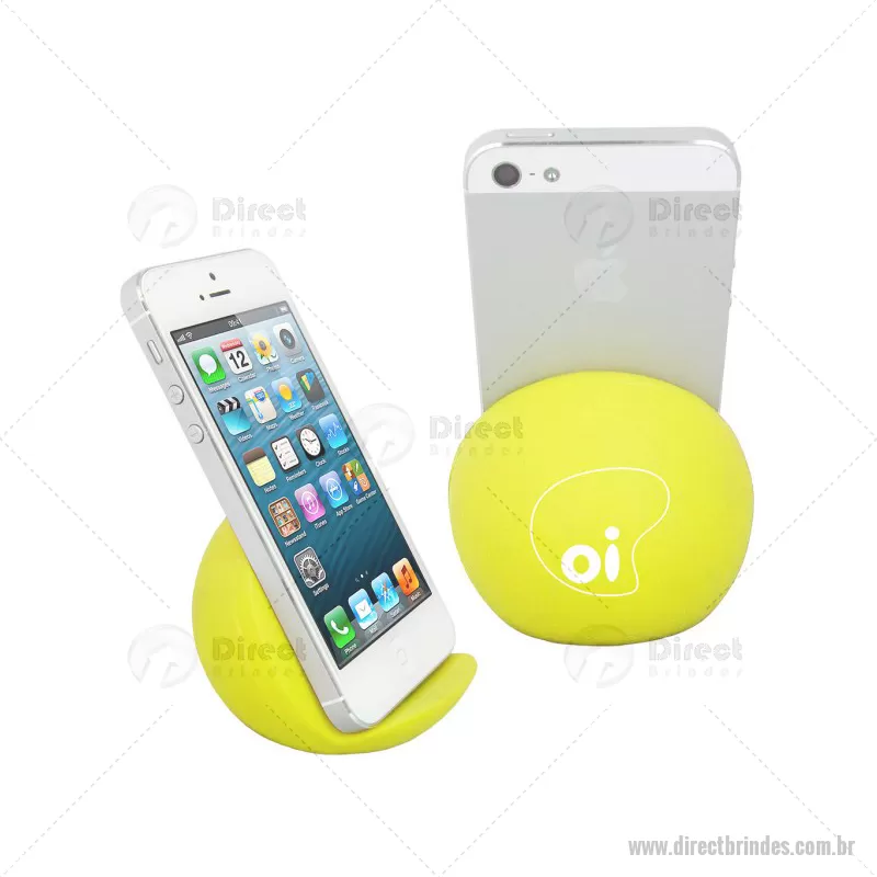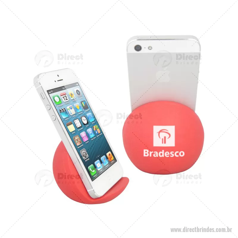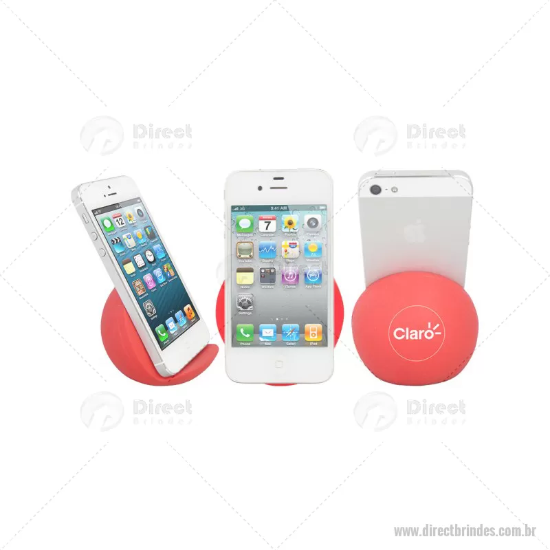 Porta celular / Apoio para smartphone de mesa Personalizado. Feito em vinil oca e disponível em várias cores. Material: Vinil - Especificação: Vinil (Policloreto de vinil) Disponível nas cores: vermelho, azul, azul escuro, azul claro, verde, verde escuro, verde claro, amarelo, laranja, preto, branco. Informação: Pantones específicos a partir de 1000 peças. Tipo de gravação: Tampografia Area de gravação: 40mm Ø Medida Produto: 65mm A x 75mm L x 70mm Peso: 45g Quantidade Mínima: 100 un - Barato - DRTTEC065