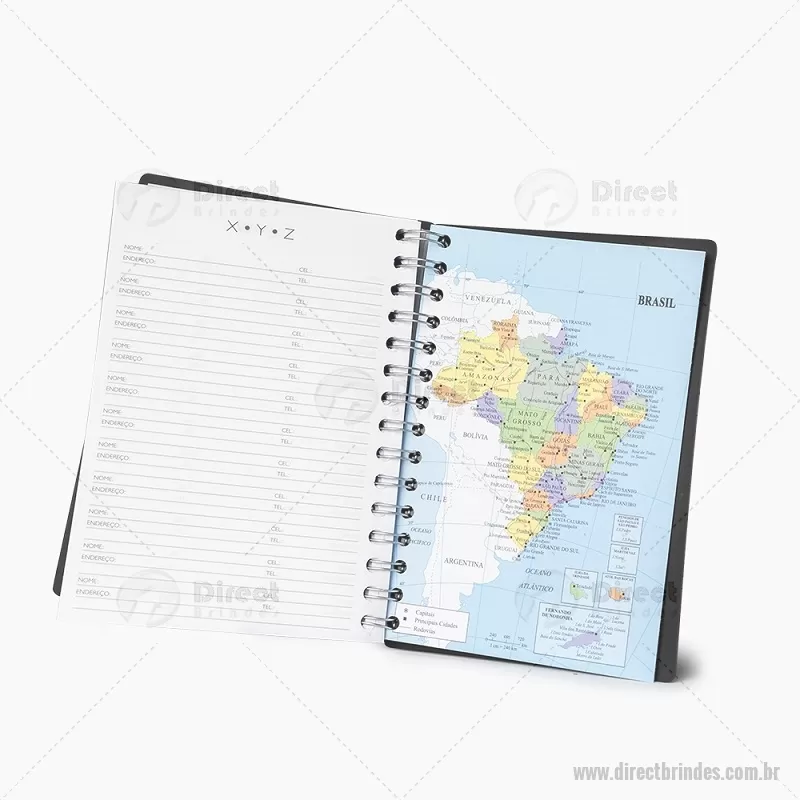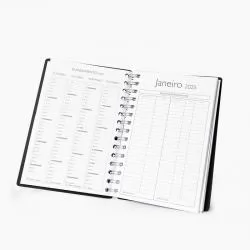 Agenda diária 2025 com espiral, material plástico para lacre. Contém folha com bolso duplo, folhas para preenchimento de dados pessoais, calendários 2024 a 2026, planejamento, receitas e despesas mensais, agenda telefônica, mapa do Brasil, mapa mundi e acompanha régua marca página de papel com 15 cm. Altura : 20 cm x Largura : 14,6 cm x Espessura : 2,1 cm Peso aproximado (g): 350 - Barato - DRTAGE030