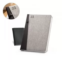 Agenda B5 em rPET. Com suporte para esferográfica e marcador em fita. Fornecida com bolsa de non-woven. Caneta Esferográfica não inclusa. Medidas agenda: 175 x 245 mm | Bolsa: 220 x 270 mm Diaries 2023 , Tamanho B5 , Miolo de Agenda em 2 cores e Papel cor Branca - Barato - DRTAGE019