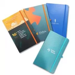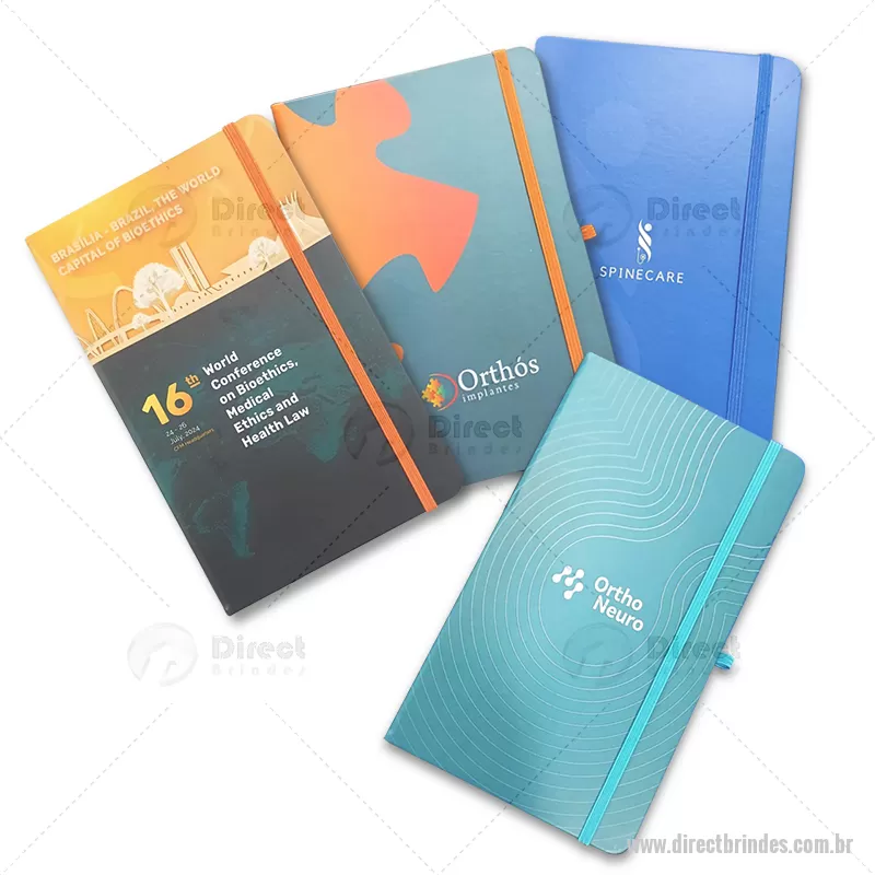 Bloco Tipo Moleskine 14x21cm capa dura impresso sem limitação de cores miolo pautado. Descrição: Capa dura revestida em papel couché impresso em até 4 cores. Miolo: 80 lâminas no papel off set ou pólen 70 gramas. Acabamento: lombada quadrada, elástico, fitilho e cantos arredondados. Moleskine Personalizado excelente opção para presentear clientes, colaboradores e parceiros. Medidas: 140x210mm. Para Adicionais ( folhas impressas, elástico p/ caneta, progaganda, folhas em papel reciclável, mensagens, fechamento em imã )e outros tamanhos consulte-nós. - Barato - DRTBLC240