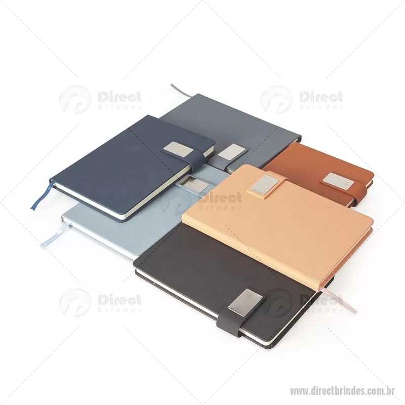 Caderneta de capa dura confeccionada em couro sintético, com acabamento elegante e fecho magnético para maior praticidade. Possui placa metálica personalizável na capa, ideal para aplicação de logotipo ou nome. Conta ainda com marca-página em fita de cetim e aproximadamente 96 folhas internas brancas pautadas, proporcionando organização e conforto na escrita. - Barato - DRTBLC281