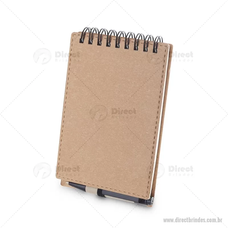 Mini Bloco/ Caderno A6 de anotações com caneta Mini Caderno com capa em papelão e encadernação espiral wire-o, 70 folhas sem pauta em 70g/m². Acompanha caneta confeccionada em papelão reciclado com detalhe em plástico. Dimensão Produto: 14x9cm (Caderno) Dimensão Produto: 8,3xø1cm (Caneta) Peso do Produto: 0,084kg - Barato - DRTBLC277