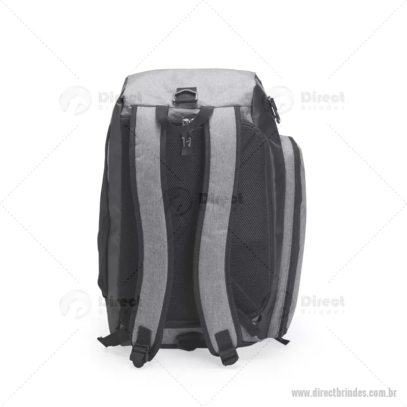 Bolsa esportiva em poliéster resistente à água, com detalhes emborrachados e capacidade de até 40 litros. Possui três compartimentos principais, incluindo bolso para notebook de até 13” e espaço separado para calçados. Conta com bolso lateral em malha, alça transversal ajustável e removível, além de alças acolchoadas e área traseira com espuma respirável, permitindo uso como mochila. - Barato - DRTBOL050