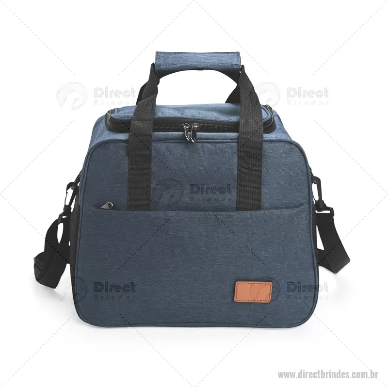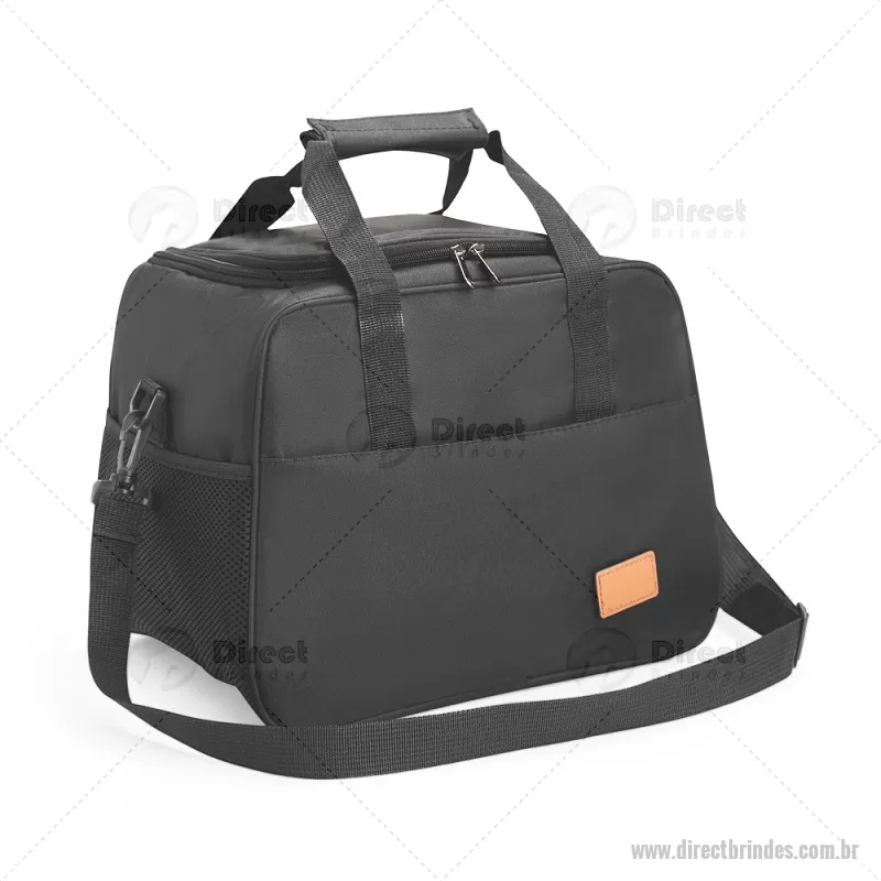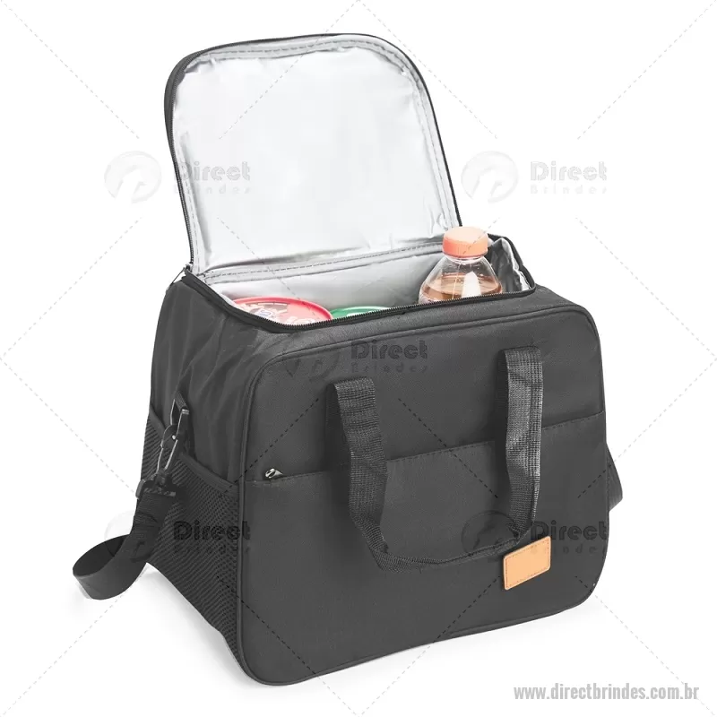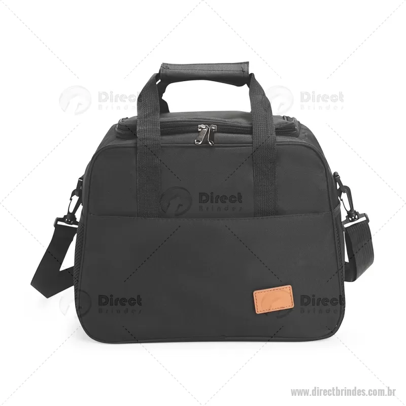 Bolsa térmica de 20 litros feita em Oxford, com fechamento em zíper e revestimento interno em PEVA. Possui bolso frontal, dois bolsos laterais em tela, alças de mão com suporte de junção e alça transversal regulável e removível. Acompanha plaquinha em couro sintético fixada por velcro. Ideal para transportar alimentos e bebidas com praticidade. - Barato - DRTBT102