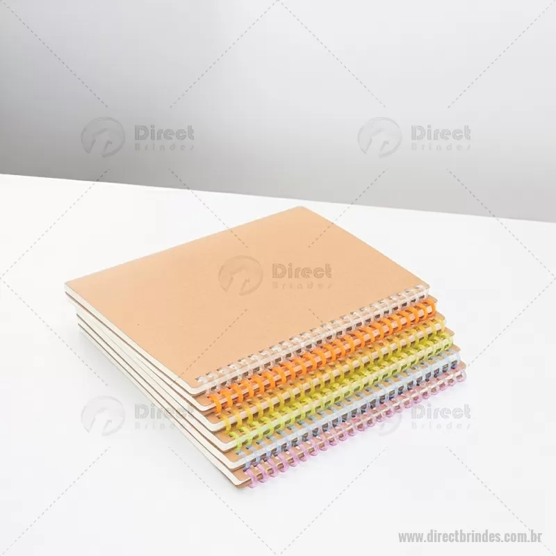 Caderno com capa em papel kraft e encadernação em espiral de plástico. Possui aproximadamente 80 folhas pautadas, ideal para anotações, estudos e organização do dia a dia. - Barato - DRTCAD041