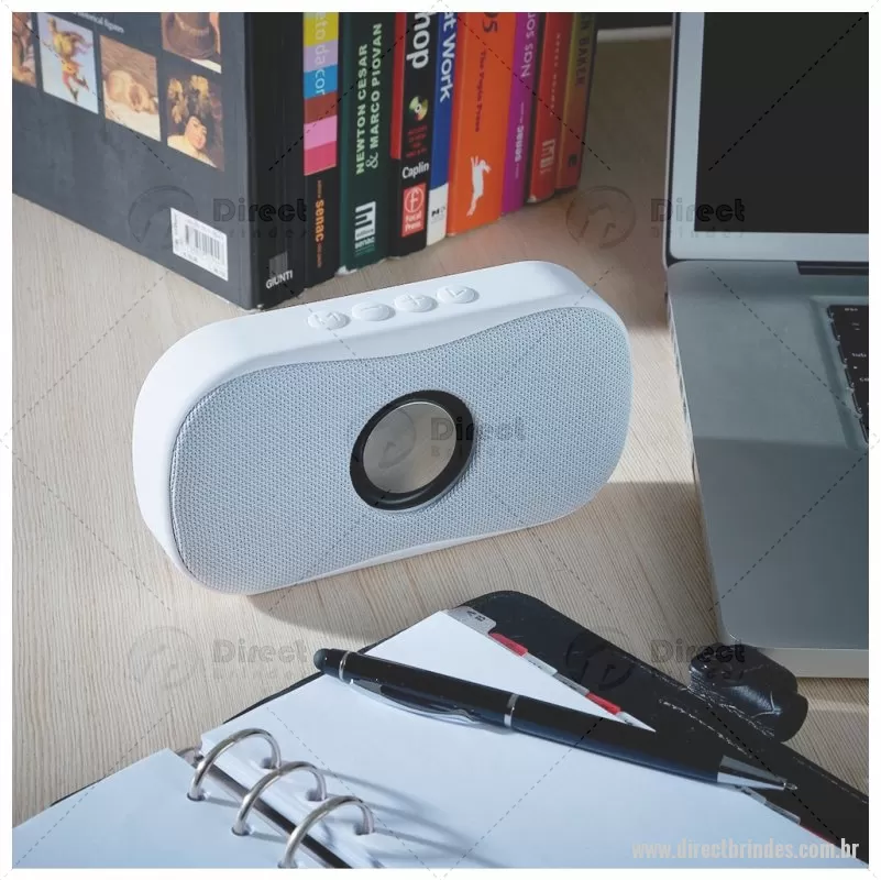 Caixa de som produzida em plástico resistente, a caixa de som multimídia tem como destaque um falante frontal que vibra ao executar músicas com batidas graves. A caixa de som executa nos modos bluetooth, rádio FM e cartão microSD. Enquanto a caixa de som estiver em funcionamento, ao segurar o botão play ela será desconectada do bluetooth. Especificações: bluetooth V 4.2; alcance de até 15 metros; voltagem DC 5V; dois falantes 4Ω3W; S/N ≥95db e frequência de resposta 280HZ-16KHZ. Possui entrada MicroUSB, entrada para cartão MicroSD, entrada USB e botão de funcionamento. Acompanha cabo USB. - Barato - DRTTEC359