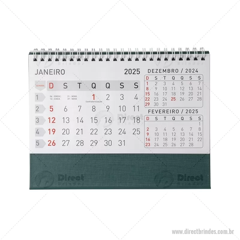 Calendário de mesa 2025 em papel couche 115g, base em percalux. Altura : 15,4 cm x Profundidade : 7,1 cm x Comprimento : 21,1 cm Peso aproximado (g): 163 - Barato - DRTCLD007