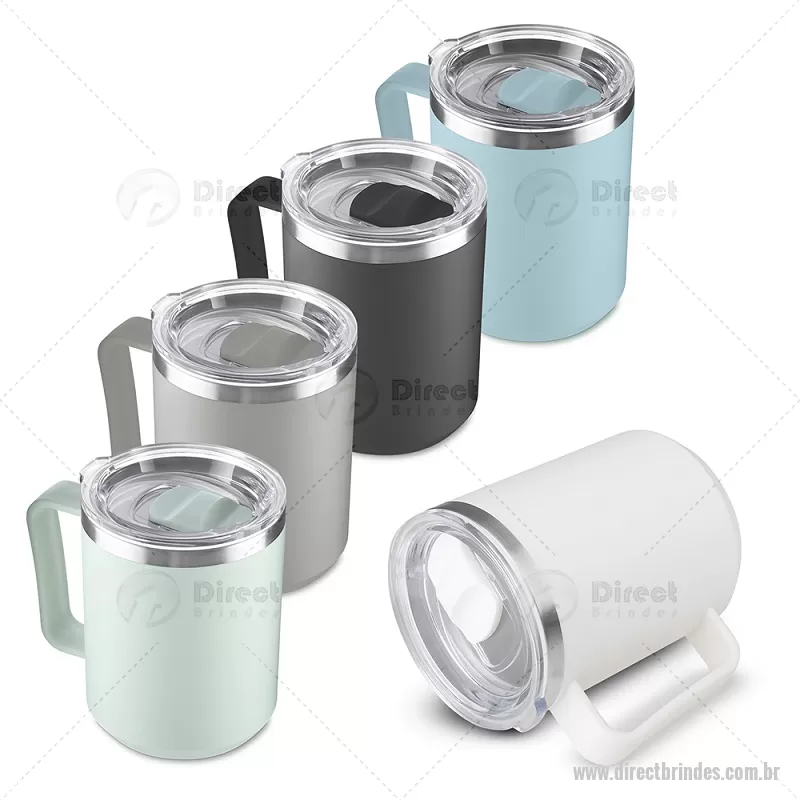Caneca com capacidade de 450 ml, produzida em plástico PP com interior em inox 304, auxiliando na conservação da temperatura do líquido. Possui alça ergonômica e tampa plástica com vedação de encaixe, proporcionando praticidade e conforto no uso diário. - Barato - DRTCAN107