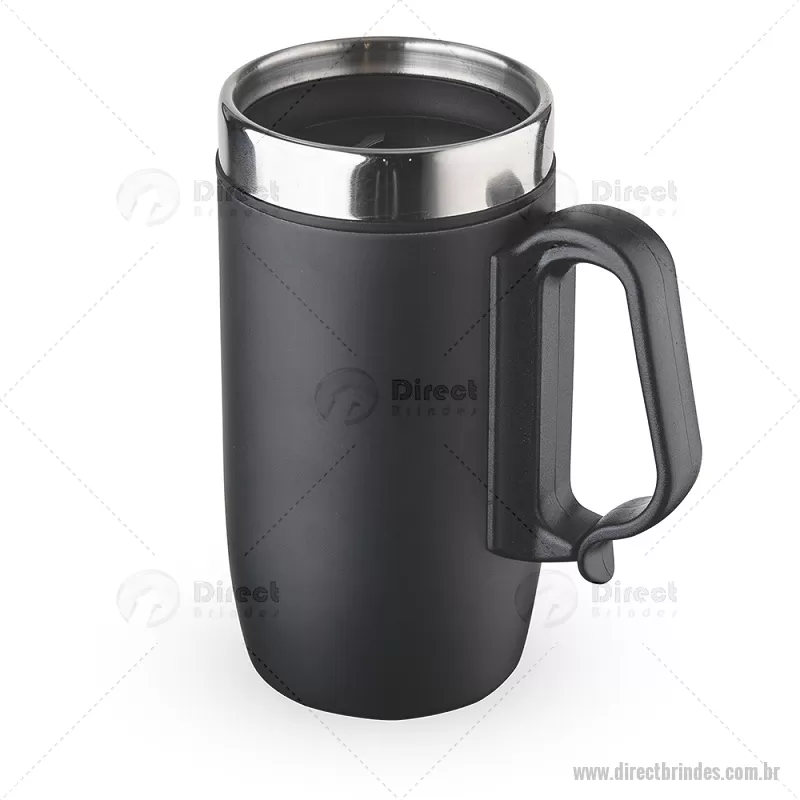 Caneca 275 ml parede dupla em Inox, com pegador de plástico, contém tampa com compartimento que ao deslizar, pode ser aberto para beber e base com EVA antiderrapante. Medidas produto: Altura : 13,4 cm x Largura : 11,2 cm x Circunferência : 21,7 cm Peso aproximado (g): 179 - Barato - DRTCAN060
