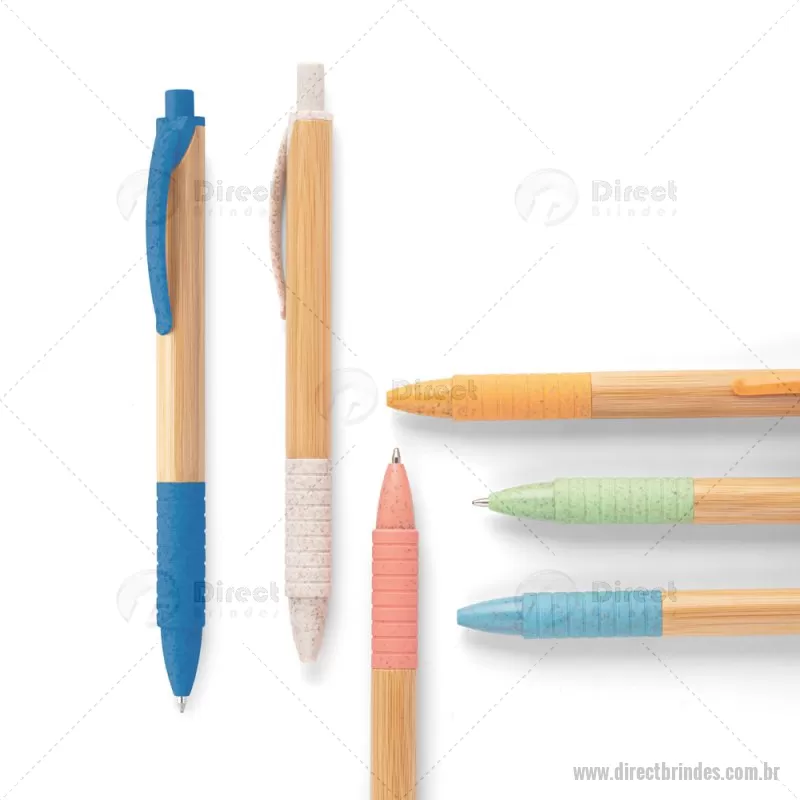 Esferográfica. Bambu. 1,5 km de escrita. Elementos em fibra de trigo e ABS. ø11x142 mm - Barato - DRTCPECO053