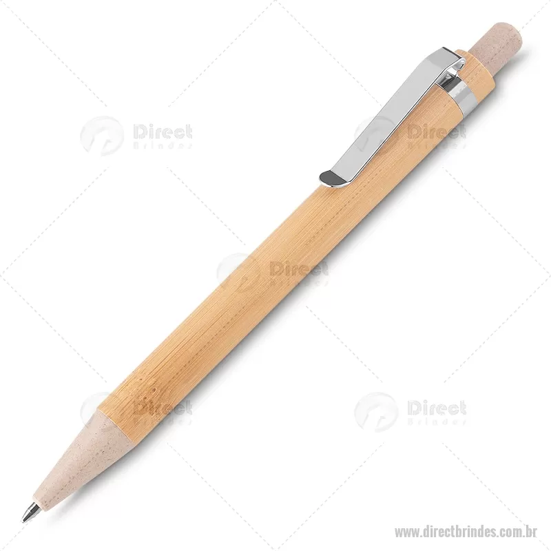 Caneta corpo de bambu com detalhes em plástico e metal. Acompanha estojo de papel bambu print. - Barato - DRTCPECO067