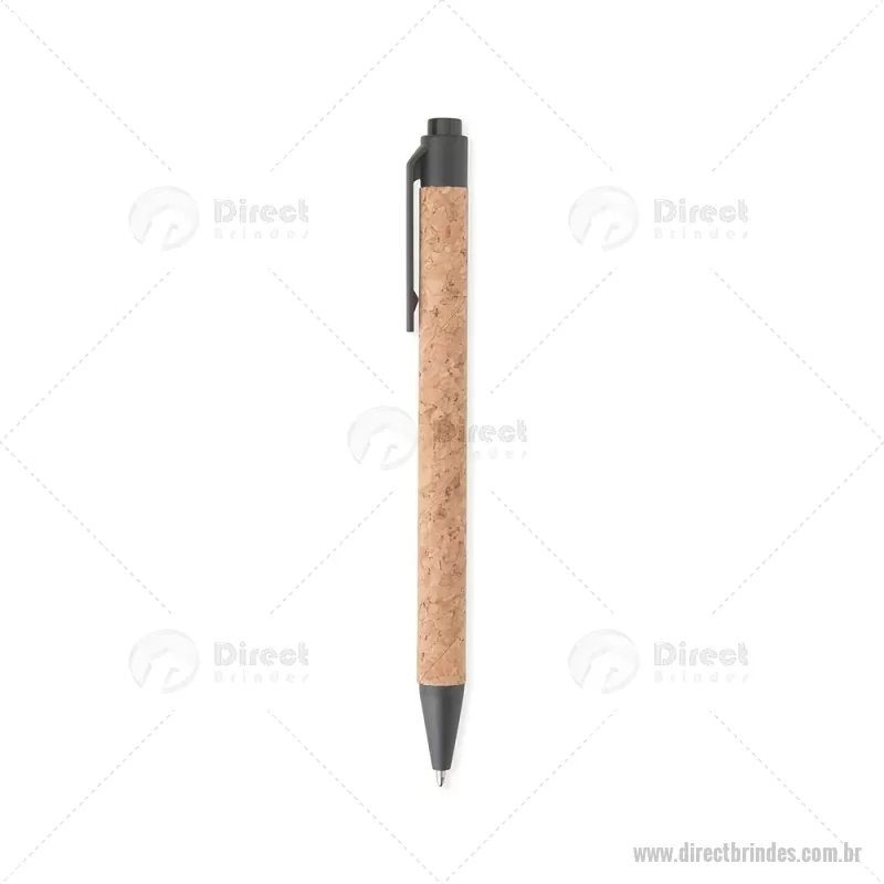 Caneta Ecológica de cortiça com carga esferográfica azul 1.0mm e acionamento por clique. Clipe plástico, acionador e ponteira plástica. - Barato - DRTCPECO068