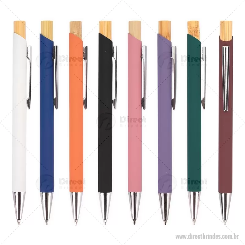 Caneta esferográfica azul 1,0 mm com corpo metálico e acionamento por clique em bambu. Oferece escrita leve, confortável e precisa para o uso diário. - Barato - DRTCMT297