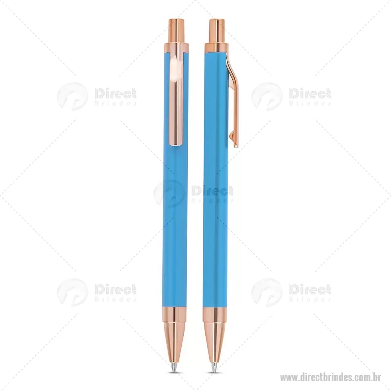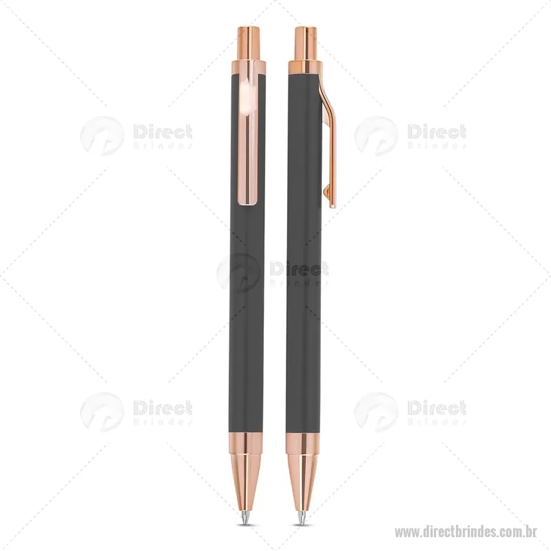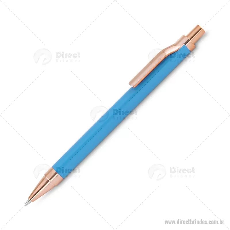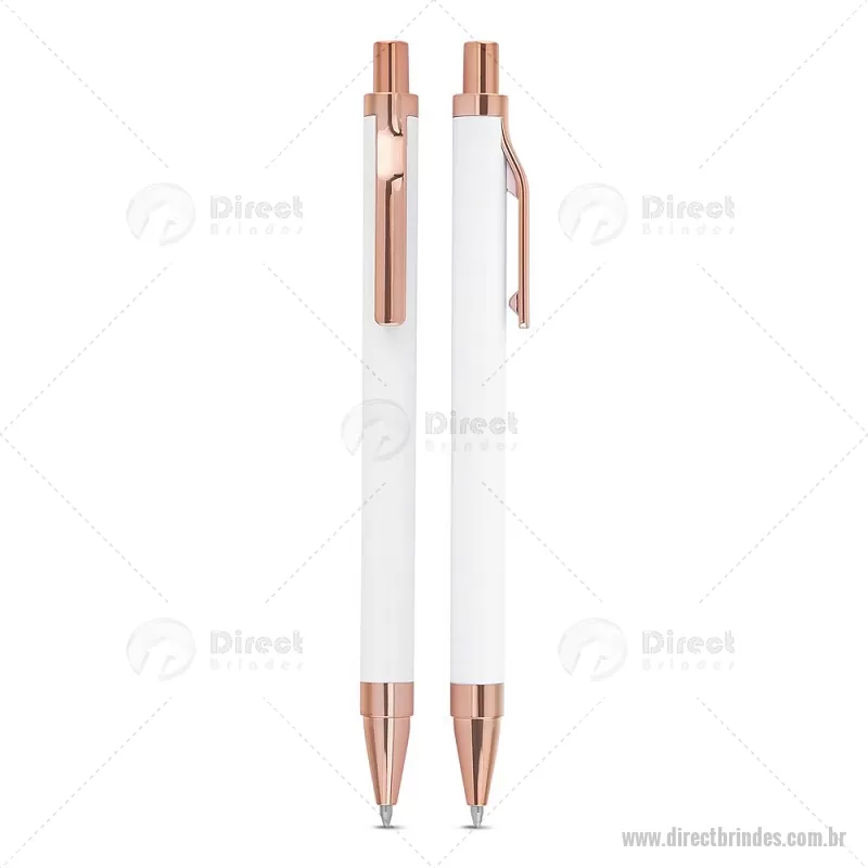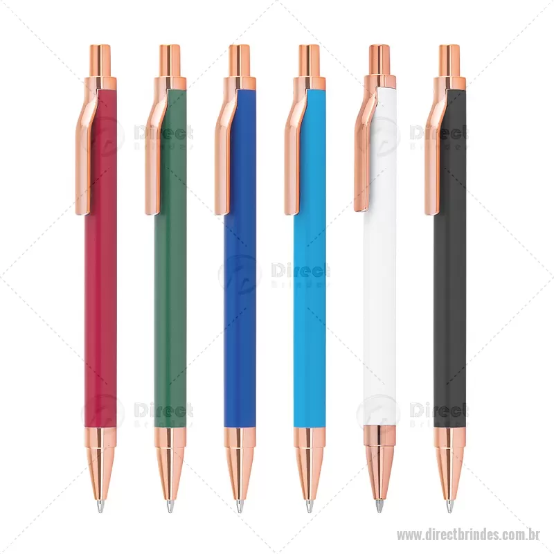 Caneta esferográfica com corpo em alumínio reciclado, acionador e clipe em acabamento rosé/bronze. Peso do Produto: 0,014kg Dimensão do Produto: 13,8xø1cm - Barato - DRTCMT307