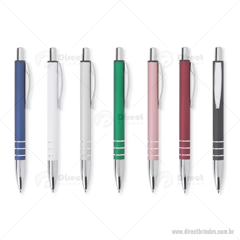 Caneta metálica com acabamento fosco, clipe metálico e ponteira plástica. Carga esferográfica azul 1.0mm e acionamento por clique. Largura : 1,6 cm x Comprimento : 14,4 cm Peso aproximado (g): 18 - Barato - DRTCMT315