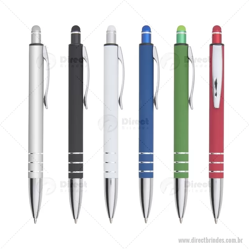 Caneta Metal Touch Caneta metálica touchscreen com acabamento emborrachado, acionamento por clique e carga esferográfica azul 1.0mm. Altura : 14,4 cm x Largura : 1,6 cm Peso aproximado (g): 18 - Barato - DRTCMT292