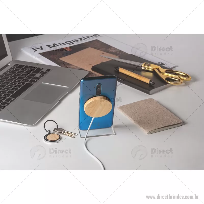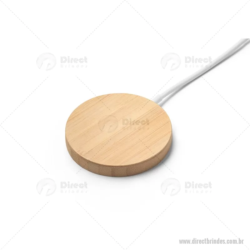 Carregador magnético por indução super-rápido em bambu 15 W Carregador magnético por indução (wireless) super-rápido em bambu. Potência de carregamento super-rápido de 15W. Incluso cabo de carregamento USB-C de 1 metro. Compatível com dispositivos móveis com tecnologia de carregamento sem fios. Fornecido em caixa presente de papel kraft reciclado. A cor e o resultado da impressão nos materiais naturais pode variar entre produtos. Medidas Produto: Ø59 x 8 mm Peso do Produto (g.): 35 - Barato - DRTTEC533