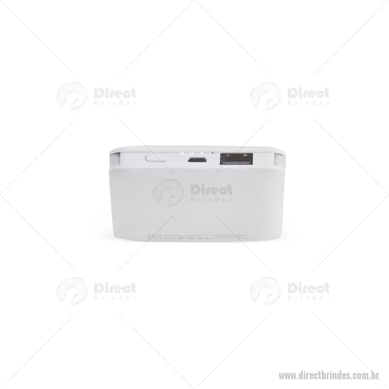 Power bank plástico de 5.000mAh com indicadores led de bateria e cabos acoplados: Lightning e V8. Acompanha cabo USB-V8 e adaptador Tipo-C. - Barato - DRTTEC500