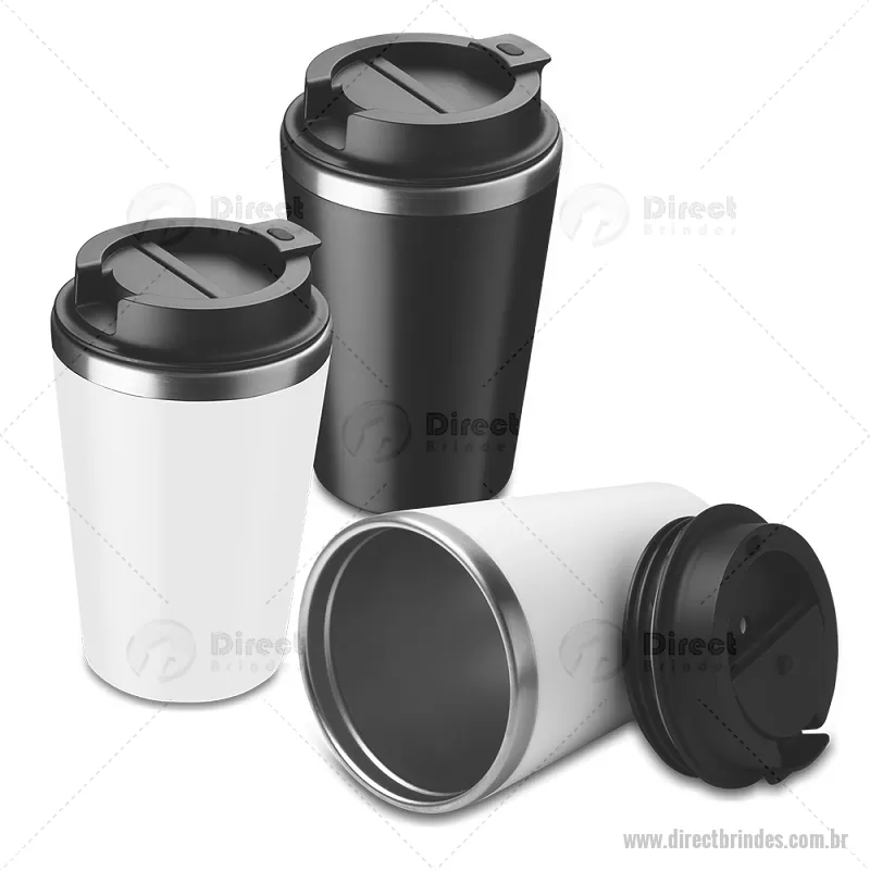 Copo térmico 350 ml com parede dupla, interior em inox 304 e exterior em plástico PP, tampa em plástico PP e acabamento com pintura fosca. *Interior do copo é produzido em inox 304 e a parte externa em plástico PP. Peso do Produto: 0,161kg Dimensão do Produto: 14,5xø9,5cm - Barato - DRTCPO152