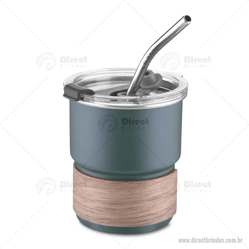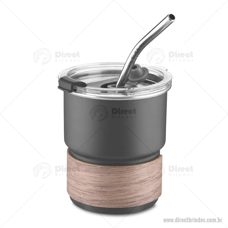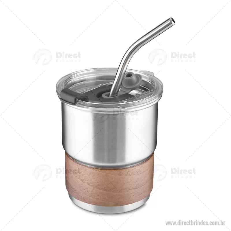 Copo em inox com Canudo Copo de parede simples em aço inox 304 com capacidade de 250ml, com canudo em inox. Tampa em plástico poliestireno (PS) que também possui um bico como forma alternativa de uso. Com pegador em fibra de noz. Possui acabamento externo com pintura fosca. Peso do Produto: 0,100kg Dimensão do Produto: 9xø7,5cm - Barato - DRTCPO150