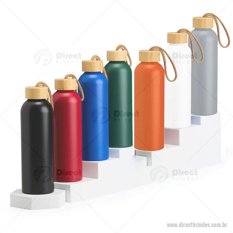 Garrafa em alumínio com capacidade máxima de 800ml. Possui tampa rosqueável em bambu com alça de algodão para facilitar o transporte. Altura : 23,5 cm x Largura : 7 cm x Circunferência : 23 cm Peso aproximado (g): 111 - Barato - DRTGAR155