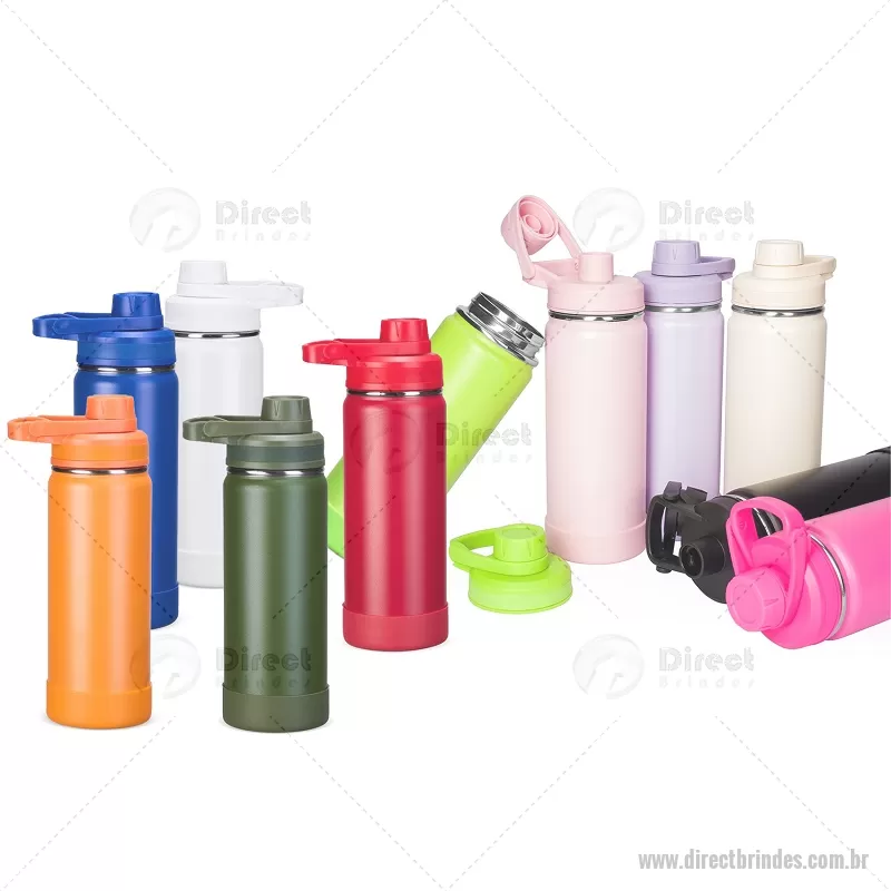 Garrafa Térmica 550ml inox com pintura eletrostática. Mantém a temperatura de líquidos por mais tempo graças à estrutura de parede dupla e ao isolamento a vácuo. Possui tampa plástica rosqueável com protetor de bocal e alça fixa. Acompanha protetor removível em silicone para a base. Altura : 22,5 cm x Largura : 7,4 cm x Circunferência : 23,3 cm Tamanho total aproximado (CxL): Diâmetro: 5,5 cm Peso aproximado (g): 290 - Barato - DRTGAT172
