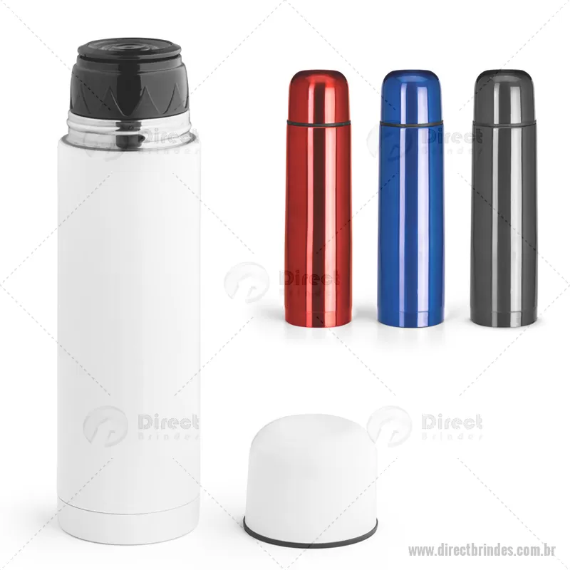 Squeeze térmico em aço inox 500 mL Garrafa em aço inox de parede dupla térmica, isolada a vácuo. Tampa interior com sistema de botão abre e fecha dando maior isolamento e segurança contra vazamentos. O design da tampa vira um copo para que possa consumir a sua bebida preferida. Capacidade até 500 mL. Preserva as bebidas quentes por 12h e frias por 24h. Fornecida em caixa branca. Certificação EU Food Grade. ø70 x 245 mm - Barato - DRTGAT077