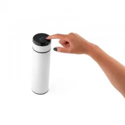 Garrafa térmica de 450ml com corpo duplo em aço inox. A tampa tem incorporado um termômetro digital que permite, com um simples toque, saber a temperatura do líquido no interior do termo. Incluso na tampa um sistema de fácil acesso à bateria para substituir quando necessário. Capacidade da bateria: CR2450. Fornecido em caixa presente preta. ø6,5 x 23,5 cm | Caixa: 7,3 x 7,3 x 27 cm - Barato - DRTGAT044