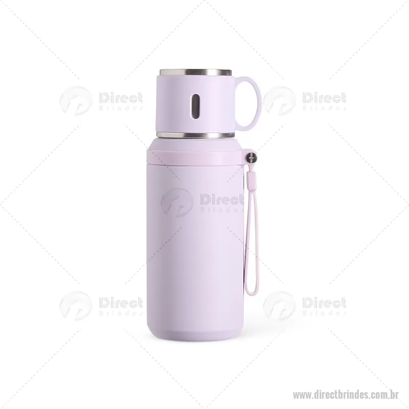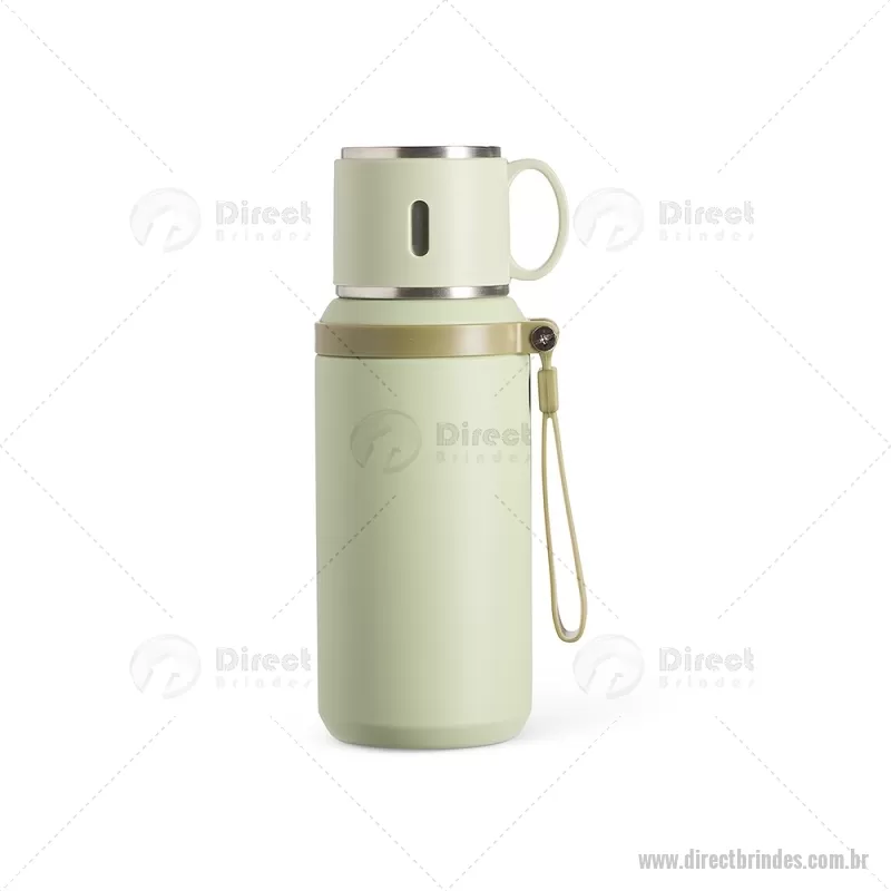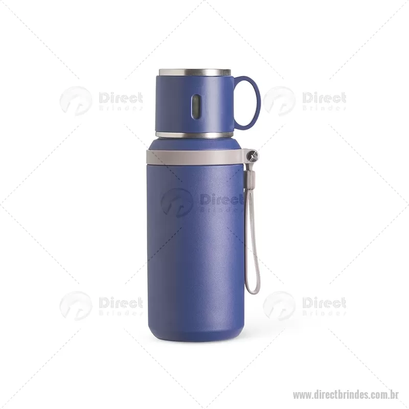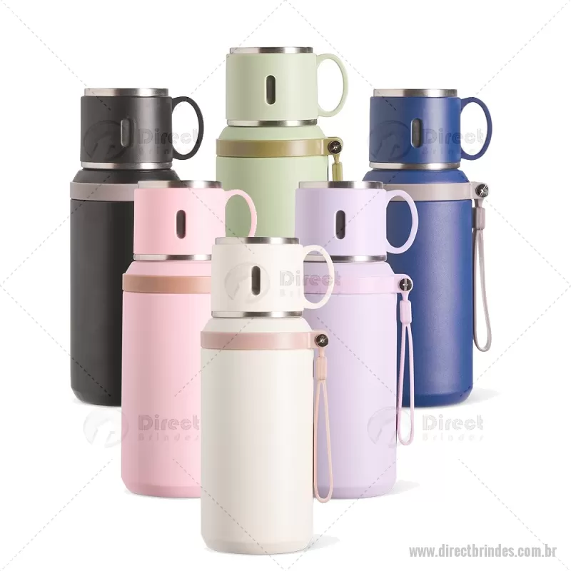 Garrafa térmica de 600 ml confeccionada em inox com acabamento em pintura eletrostática. Possui parede dupla para melhor conservação térmica, tampa interna rosqueável com anel de vedação, abertura do bocal por botão e infusor integrado. A tampa externa funciona como caneca e a alça emborrachada facilita o transporte, tornando o uso prático no dia a dia. - Barato - DRTGAT160