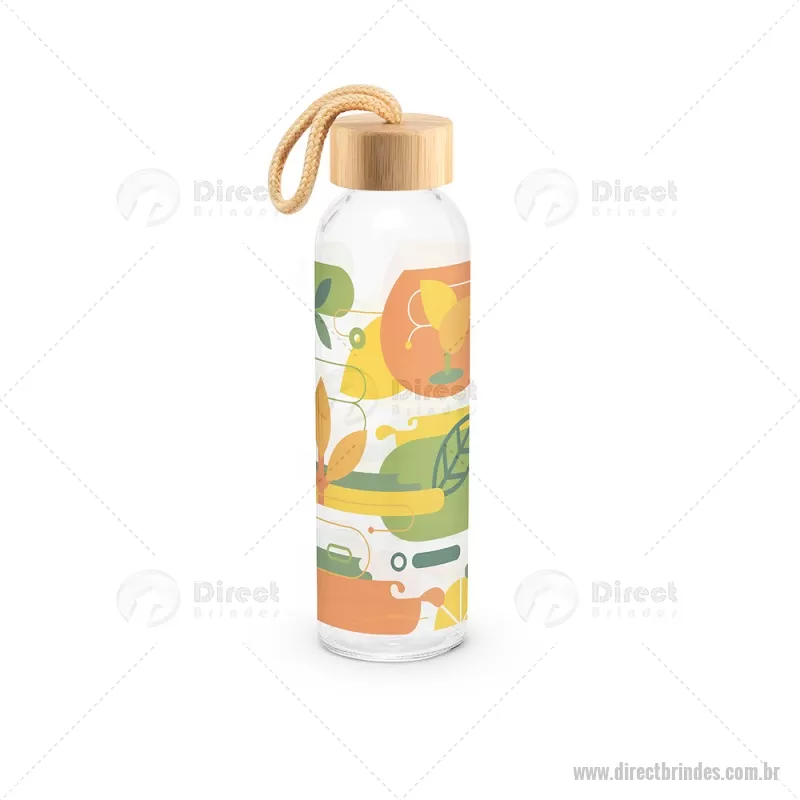 Garrafa Squeeze Vidro com Tampa em Bambu Personalizada Barato