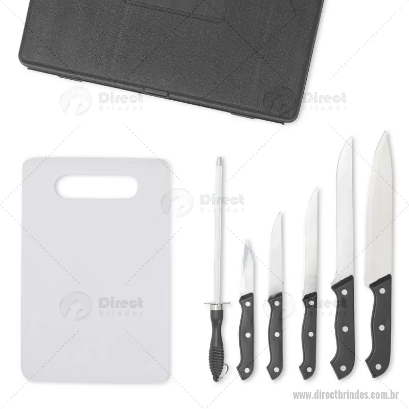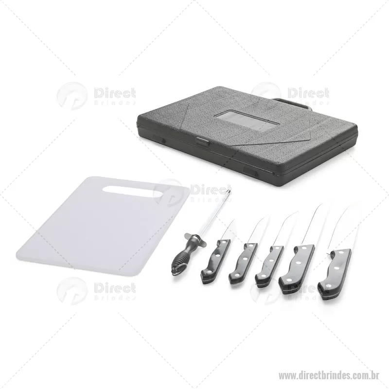 Kit Churrasco 7 Peças Um kit completo para ajudar na preparação de um churrasco inteiro e deixar o momento de confraternização ainda melhor. Este conjunto traz 7 itens, incluindo 1 tábua em plástico, 1 chaira em aço inox, e 5 facas em tamanhos diferentes do mesmo material: 1 faca de legumes (com 3 polegadas de lâmina), 1 faca de cozinha (com lâmina de 4 polegadas), 1 faca de desossar (com lâmina de 5 polegadas), 1 faca trinchante (com lâmina de 7 polegadas) e 1 faca peixeira (com lâmina de 8 polegadas). Tudo isso acompanhada por uma elegante maleta para facilitar a organização e o transporte do kit. Altura : 27cm x Comprimento : 36 cm Peso aproximado (g): 929 - Barato - DRTKCH093